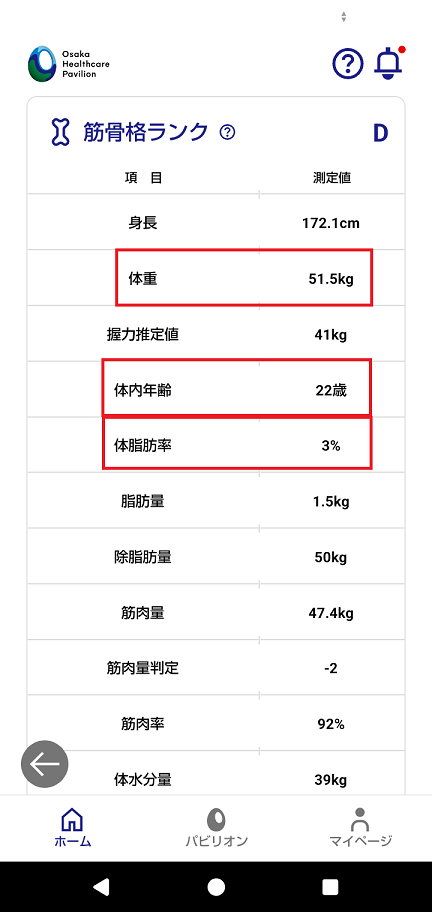 多分痩せ過ぎで筋肉量が少ないからDランクになったっぽいですね。