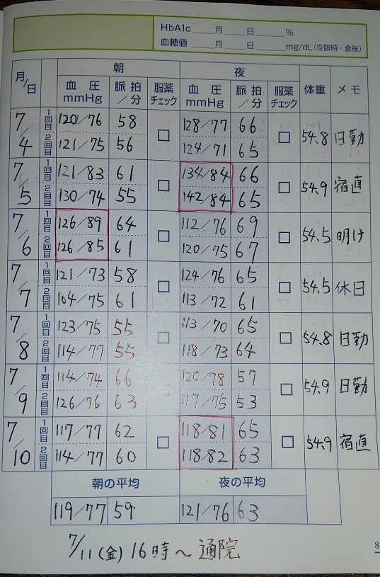 循環器内科の先生から血圧の測定記録を録る様に言われてから毎日血圧を測っています。