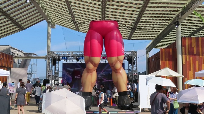 競輪選手の強靭な下半身を模した大きなバルーンの存在感がすごいです。