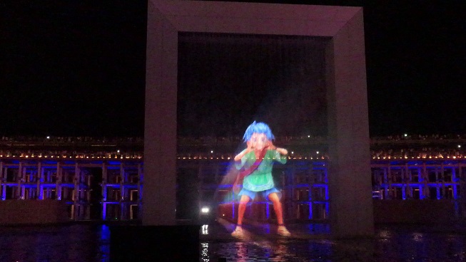 中央の門の水の壁にプロジェクションマッピングで映像を映しているんですね。