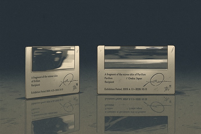 もしかしたら実際に今のパビリオンに使われているミラー膜ではなく、同じ素材のミラー膜かもしれませんがそれでも最高の記念品になります。