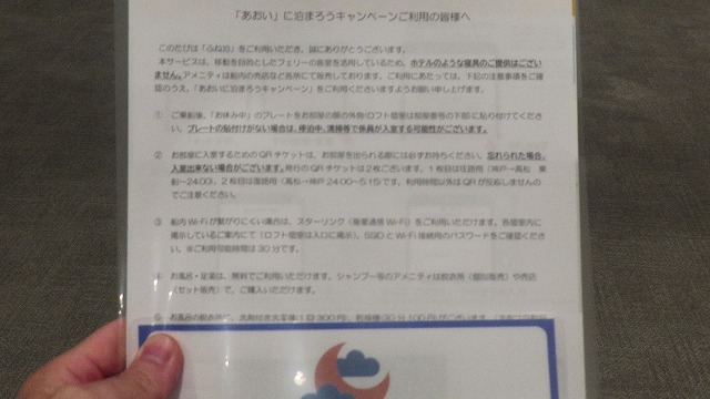 眠れませんでしたが久々にフェリーに乗れて船から見る景色に癒されたのでふね泊を利用して良かったです!