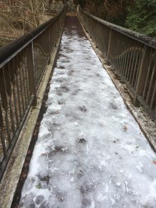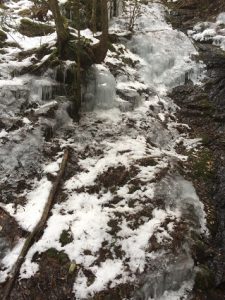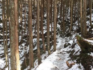 遊歩道に入り進んでいくと滅茶苦茶雪が残っていました。