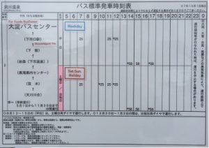 ひとまず帰りのバスの時刻表を見にバス停へ。