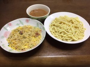 「チャーシュー盛つけ麺」と「チャーハン」の冷凍食品定食が