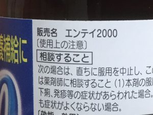 裏面のラベルには販売名「エンティ2000」になっているところです↓