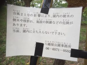 台風21号の影響で木がかなり倒れていて封鎖されていました↓