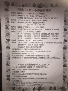 ちなみに海遊館年パスの値段は5000円です(通常入場料は2300円)