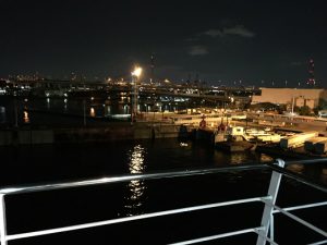 そして夕食を食べた後は再び甲板に夜景を観に行く事に。