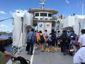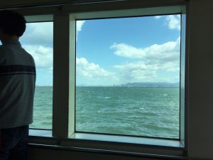 昨日乗った志賀島行きのフェリーに比べて随分でかいです。