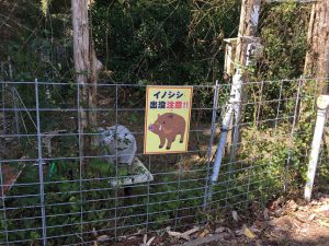 道中、イノシシ注意の看板がΣ( ̄□ ̄|||)