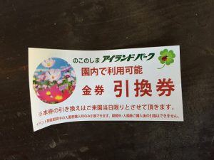 のこのしまアイランドパークで使える金券引換券を貰いました!