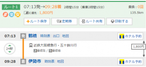 特急だと20分早く行けますが1320円余分に掛かってしまうので急行がおすすめです。