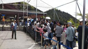 乗り場はこの通りカップル、家族連れの行列でございます。