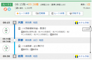 JR大阪駅から京都駅まで行って京都駅で湖西線に乗り換えて志賀駅まで行きます。