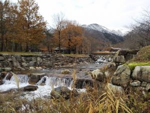 そしてメタセコイア並木を抜けると目的地の温泉が見えてきました!