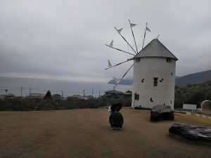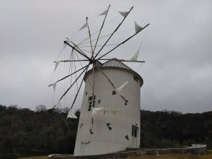 先程のオリーブ記念館で魔女のほうきを借りてこの風車の前で記念撮影するというのがトレンドらしいです。