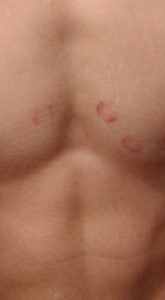 他の人から「お前、その胸の痕どうしたんだ?」と聞かれて