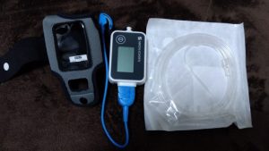 この機械は就寝時の酸素濃度や呼吸を記録するものです。