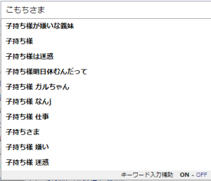 ちなみに試しに検索でこもちさまと入力すると予測変換でこのように表示されました↓