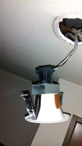 早速、ブレーカーを落として新しいLEDダウンライトの方に線を繋ぎ変えます。
