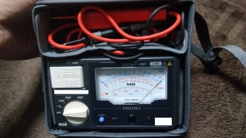 そして宿直明けの日、せっかくなので職場から余っているメガーを借りて自分でも絶縁測定する事にしました。